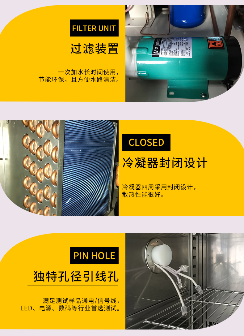 6.溫度循環(huán)系統(tǒng)采用耐溫低噪音空調(diào)型電機,多葉式離心風輪;